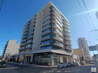 Semipiso de categoría de 2 dormitorios que cuenta con 121 m2 propios totales (104m depto. + 17m cochera cubierta y baulera) con frente a calle Alem, más las amenities de uso común en el sector de la terraza: dos piletas climatizadas descubiertas y dos SUM-Quincho totalmente equipado y amoblado (uno para cada torre).